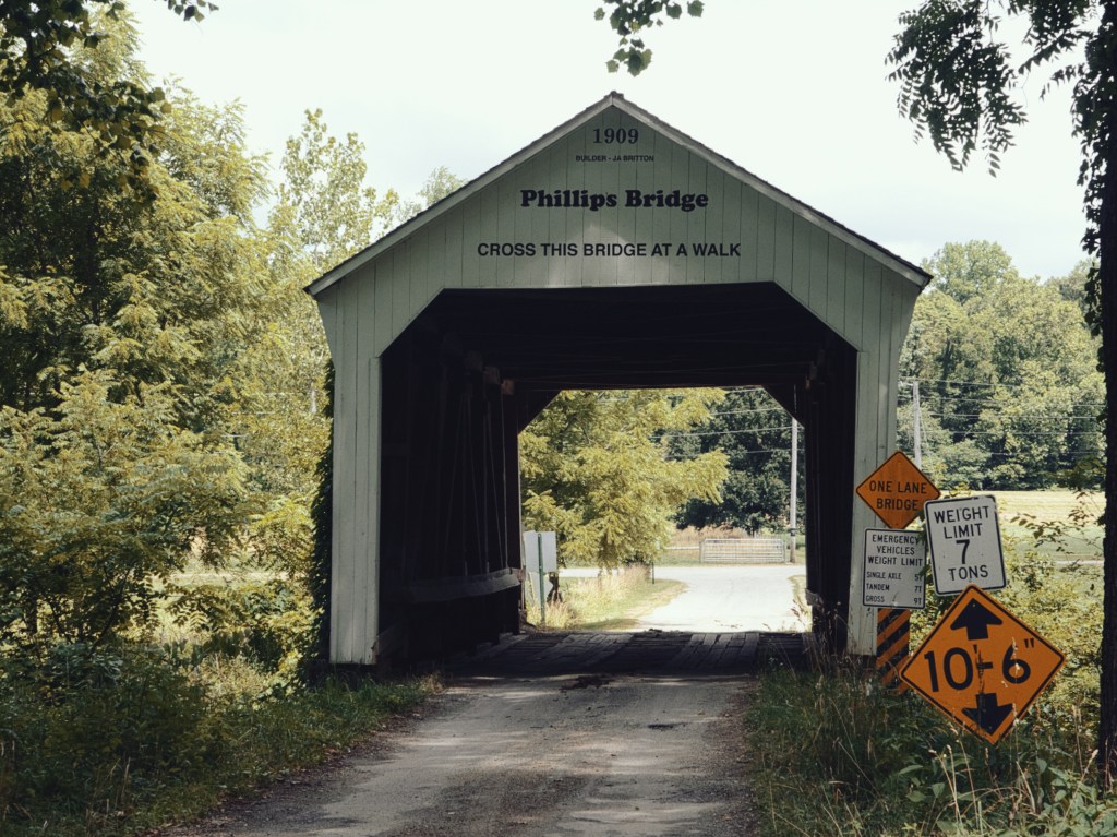 The Narrows Covered Bridge, Cox Ford Bridge, Jackson Bridge, Marshall Bridge,West Union, Sim Smith Bridge and Phillips Bridge