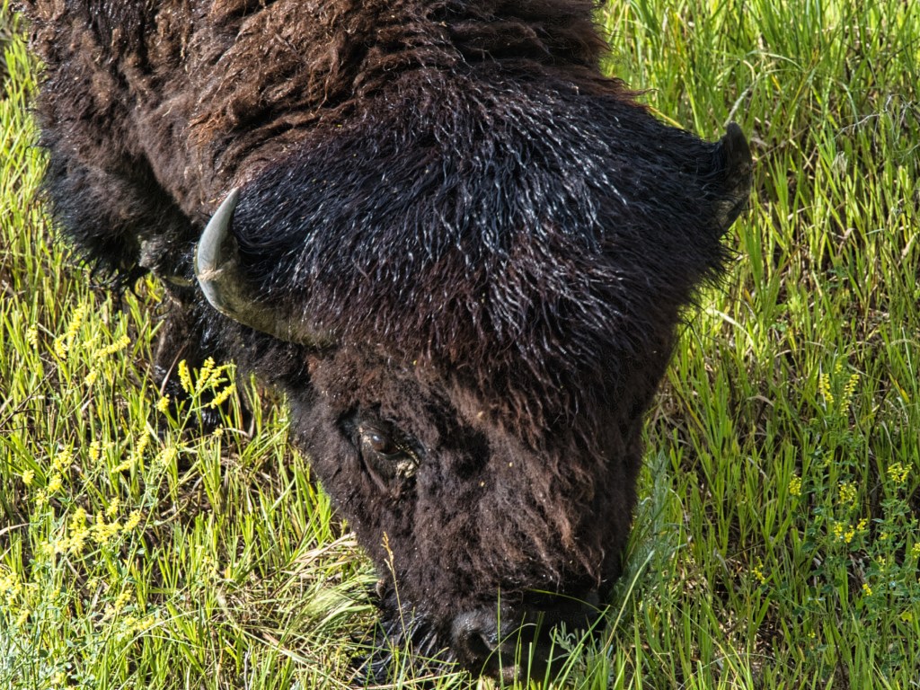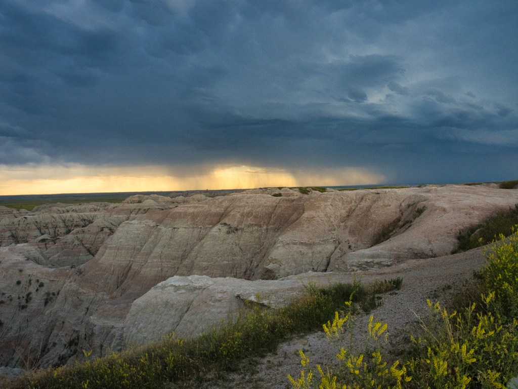 Bison greeted us at the entrance and we saw some deer playing a little farther out in the fields. We noticed as we got deeper and deeper into the park, the sky was noticeably getting darker and darker. We realized there was a storm on the horizon and it was slowly coming our way. Before we could get back to our camp, it was pouring and then hail was hitting our truck.