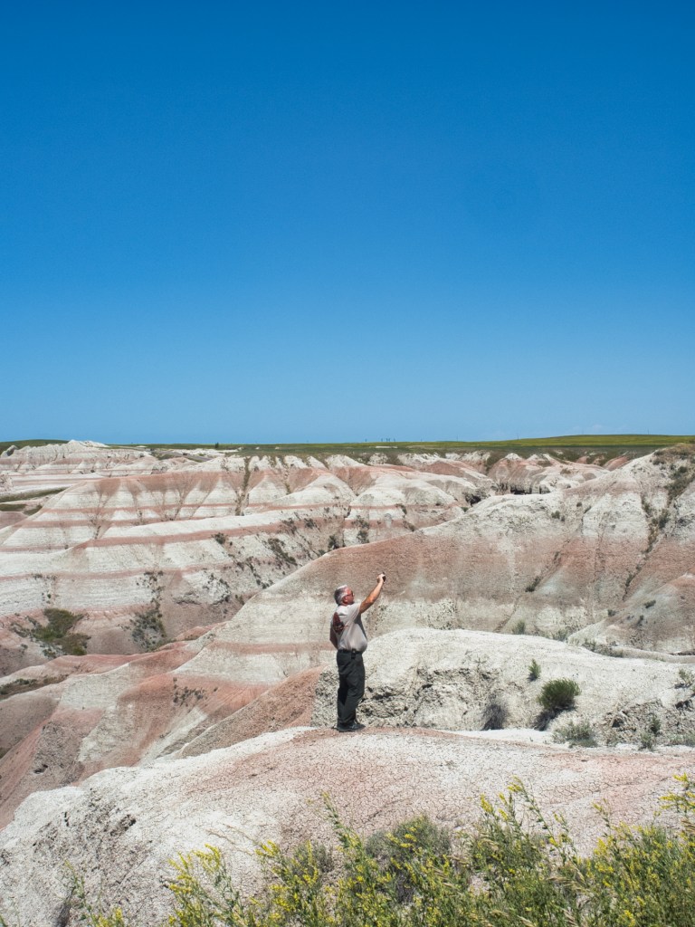 We made it to the Badlands in one day- Ok, let me set this straight. After leaving Indy and driving a few hours we spent a night at a rest area in Iowa. John set the alarm for 3:00am. When the alarm went off I asked, “what time is it?” John told me it was 3:00. I asked why he set the alarm for 3:00 and he told me he couldn’t sleep. Of course he couldn’t sleep–the alarm was going off at 3:00. He was ready to go, so off we went. I don’t care, I am going to sleep in the car anyway.