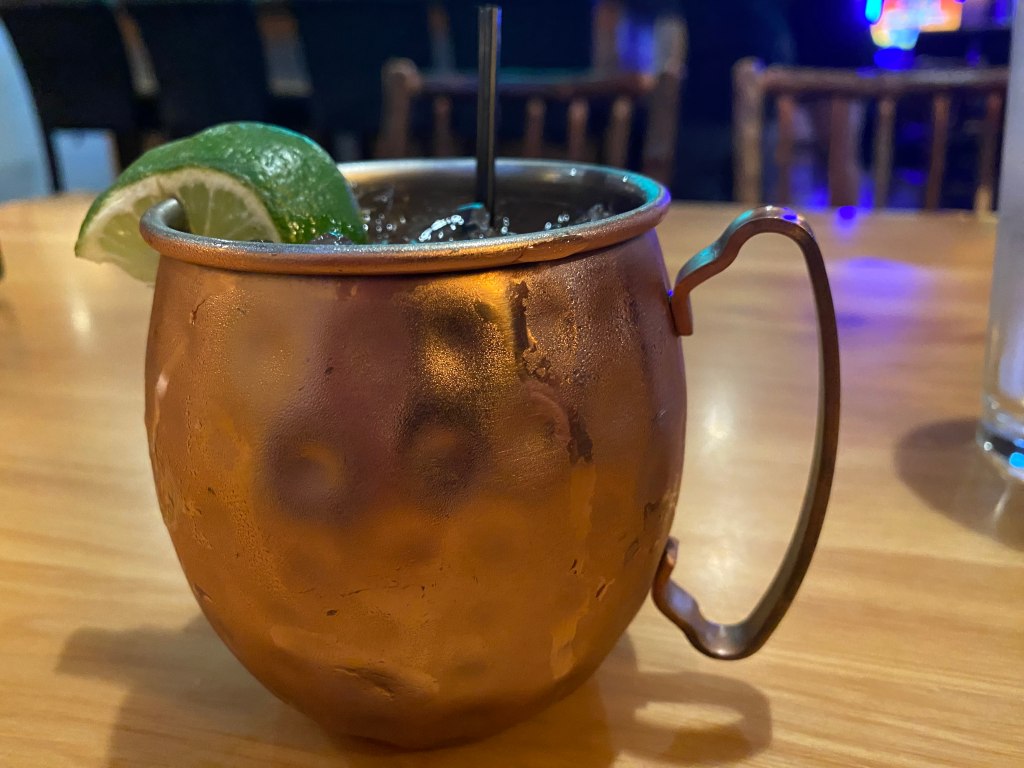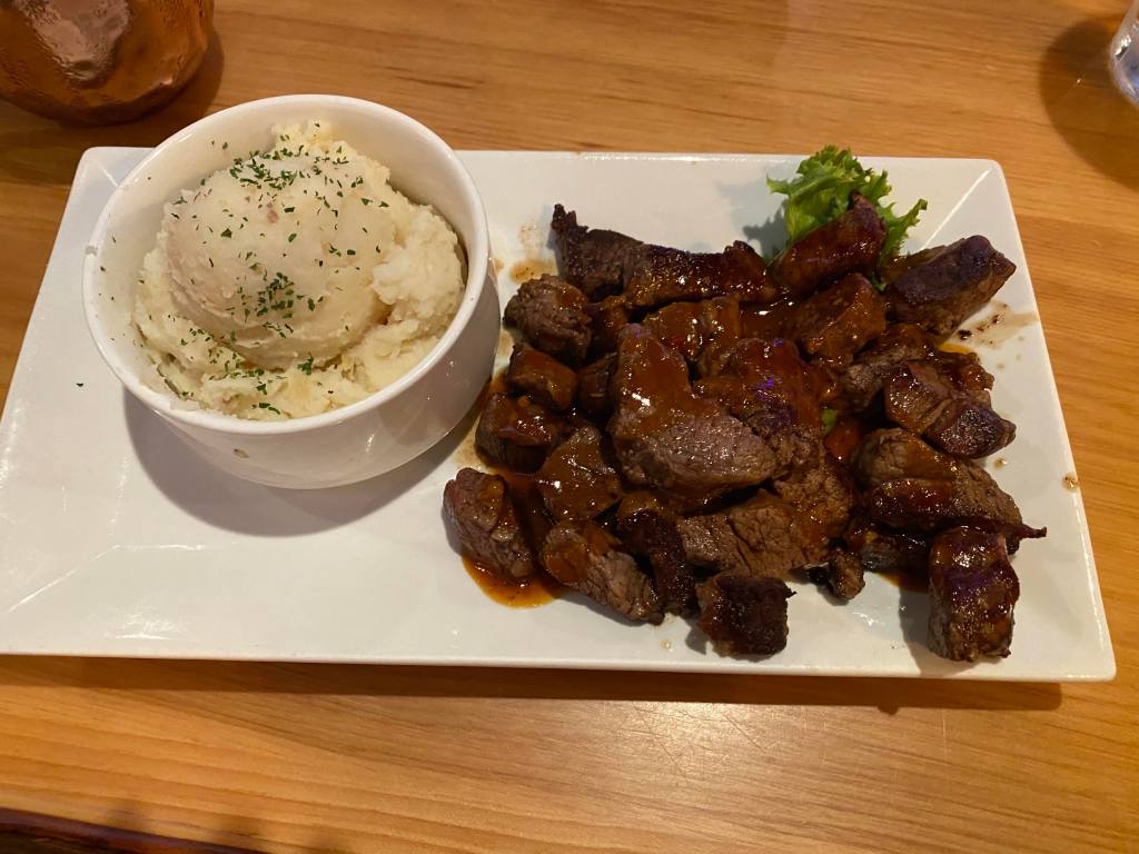 I had a Raspberry Moscow Mule–Yummy! And Whiskey Steak tips with mashed potatoes!!