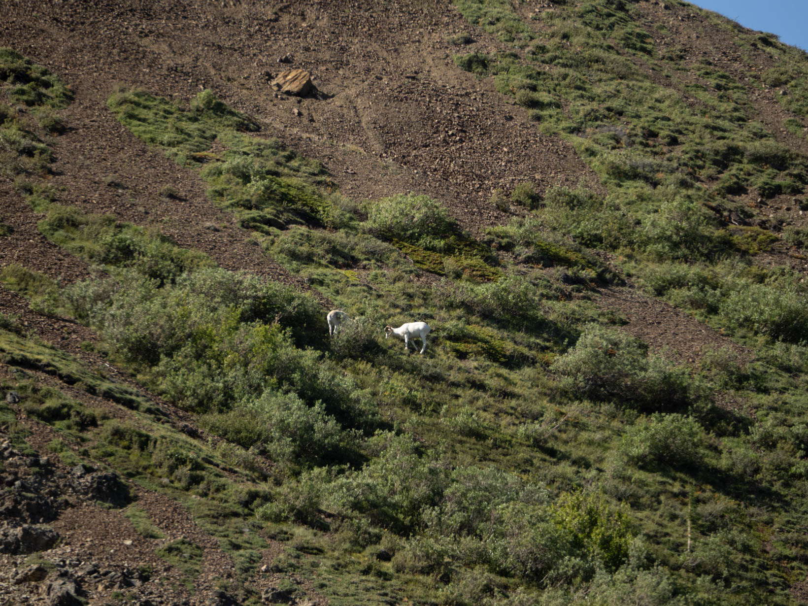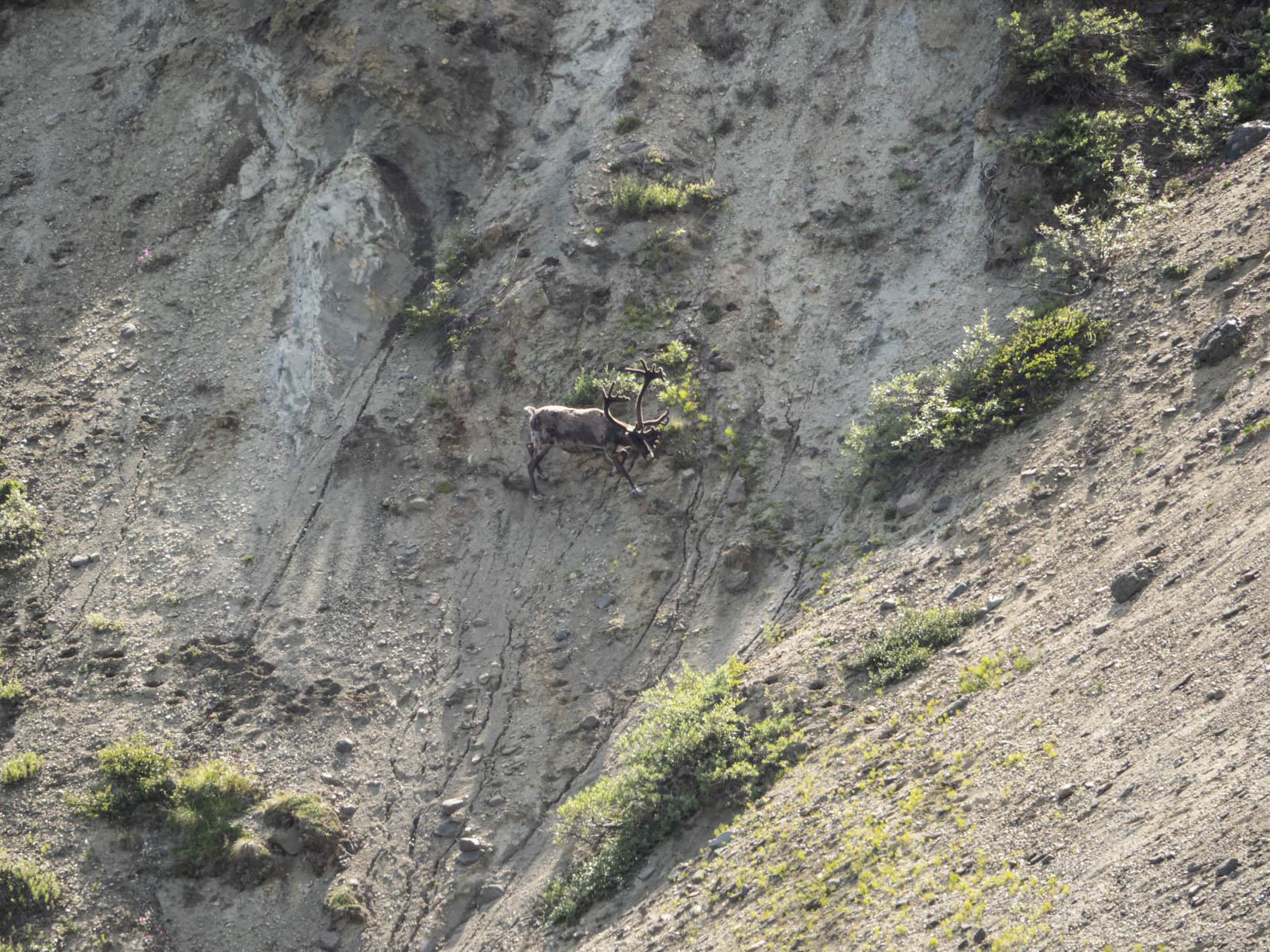 We were still 100+ miles from Denali National Park. We got there around noon and decided to take the 43 mile bus ride–as far as you could go into Denali. Originally we thought we would get off the bus and walk some and then catch another bus but it took almost 3 hours to go 43 miles. We stopped for some animal sightings but even with a long lens it wasn’t worth the shot. I still took some- of course but they are really bad. Imagine all those people with their phones taking this shot. This is with a 600mm lens.