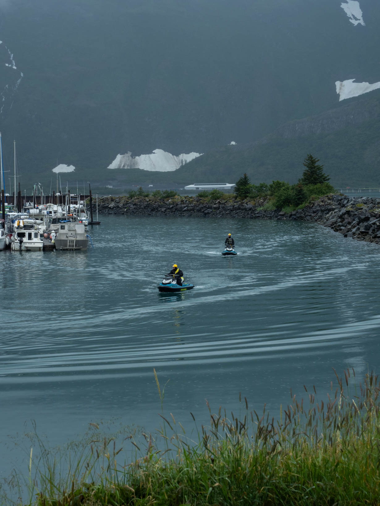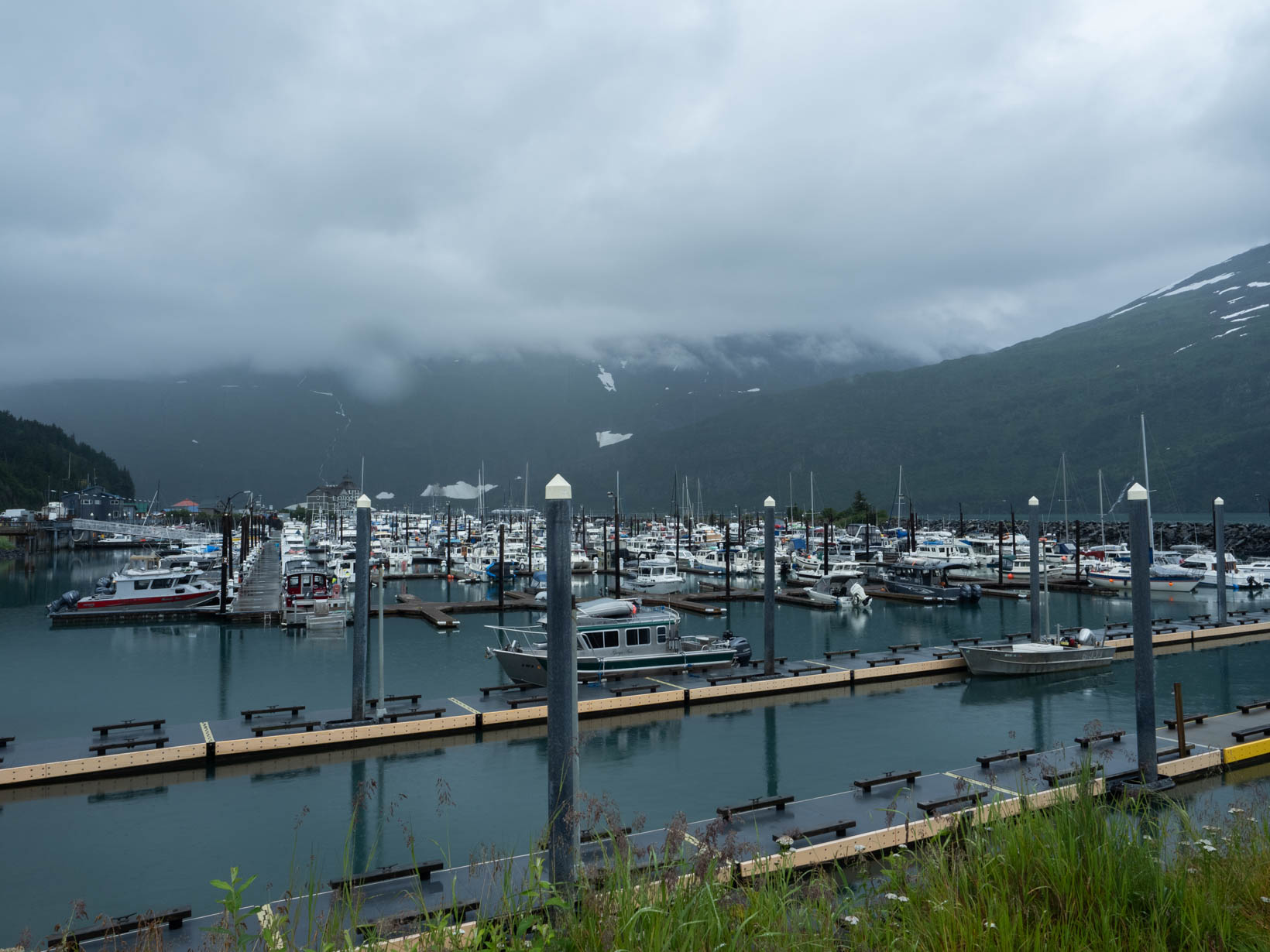I am jumbling up the last four days. Christy and Leeman and the kids left us on Thursday–well technically we said our goodbyes Wednesday night. John and I got up with no real plans. We decided to go to Whittier because we did not get an opportunity to take the tunnel that is shared by the train and automobiles. We got so lucky we hit the tunnel exactly on time to go through on the way there and just 2 minutes to wait on the return. It doesn’t get any better than that. Whittier is a small fishing village–as is most all the coastal towns along the Kenai. Whittier can only be accessed through that tunnel or by boat or air. Only one road in and one road out. There are only about 272 residents who mostly live in one large apartment building that was once used as Army barracks. The remaining, I think about 10% of the residents reside in another apartment building. They do have a school which actually has an underground tunnel for use during the cold winter months.