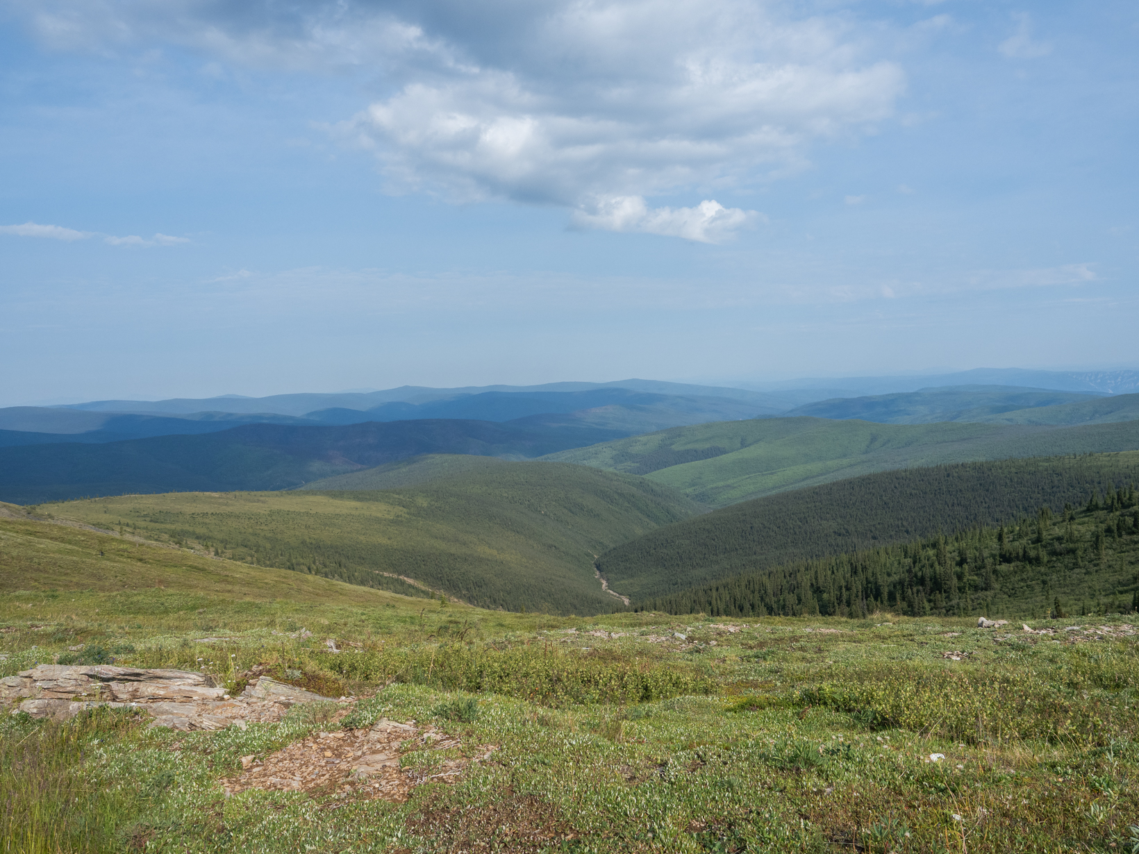 We indeed met up with Judy and Mike–they are feeling much better–not 100% but much better. Dawson City is only about 100+ miles from Chicken but, the road is dirt and gravel so it was slow going. Our plan was to camp in Dawson City and prep our campers for the Dempster Highway. We received lots of good word that the Dempster was in good shape. The road to Dawson City is called The Top of the World Road and it is rightfully named. Would you believe the picture at the top is pretty much the picture I took at the Top of the World. Oh, and this one.