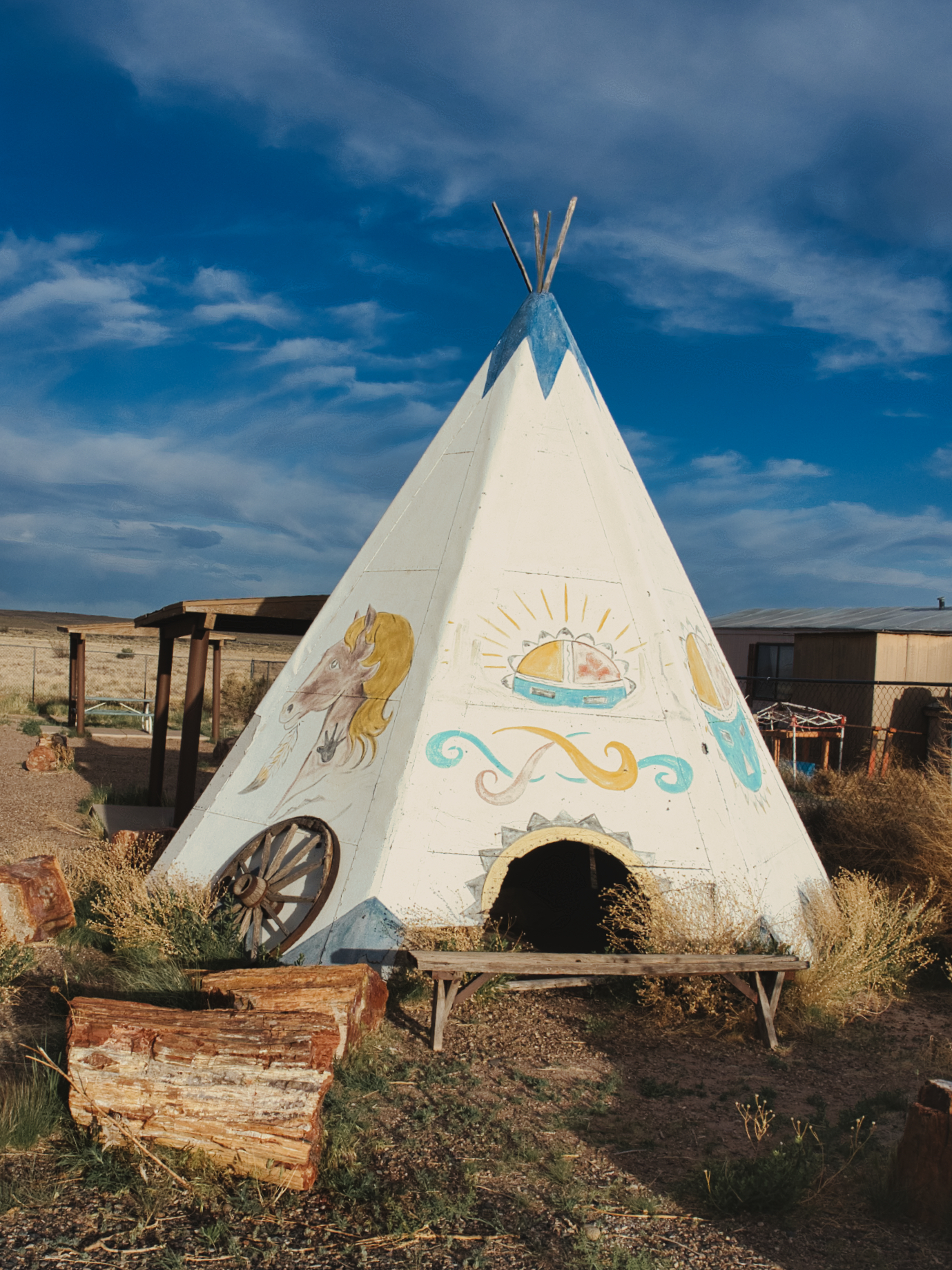 We arrived at the Painted Desert at 4:56. They close the gate at 5:00–we just made it in, whew! We had to drive all the way through to the other side to our campsite. There is free camping outside the south gate. I am going to be honest. There isn’t a lot to see at this national park. While I would never say, “Don’t go.” Once you drive through you pretty much have seen it all. It’s beautiful to see. We set up camp and made dinner. It was so windy I had to stand outside with a blanket held out to block the wind. Even though it was hot all day the evenings definitely cool off–which is good because we did not have power. John did check in the museum/gift shop to make sure we were in the right spot. She confirmed and let John know she would be there at 6:00 am making coffee.