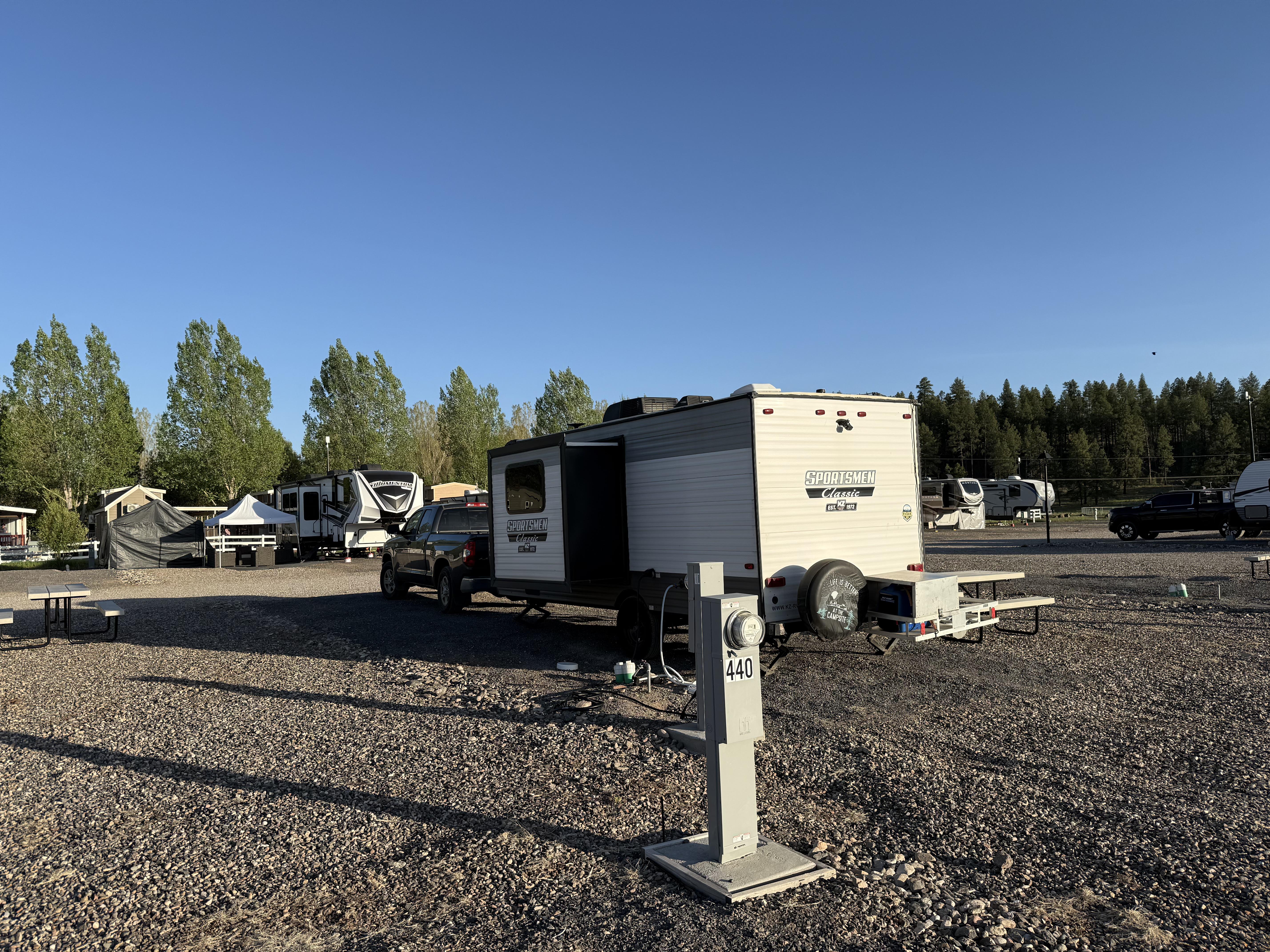 We spent one night at Mund’s RV Park. We made reservations but, we arrived late so we didn’t get the code to access the bathrooms. We used the shower in our camper–which is fine– just a little confining. Munds is huge. We were in their “oversized” campsites which had no shade. Originally we thought we might stay longer but really didn’t like it there. We found some available sights at Dead Horse Ranch and booked 3 nights. Absolute heaven here.
