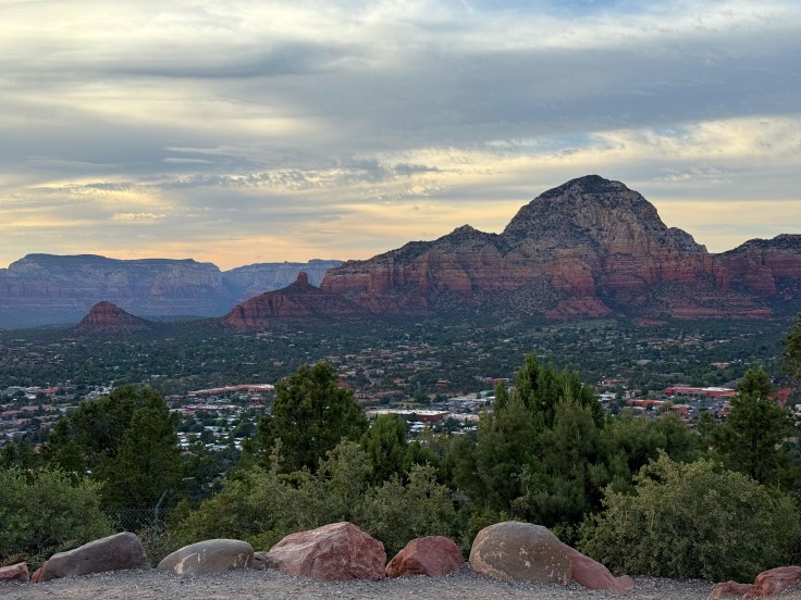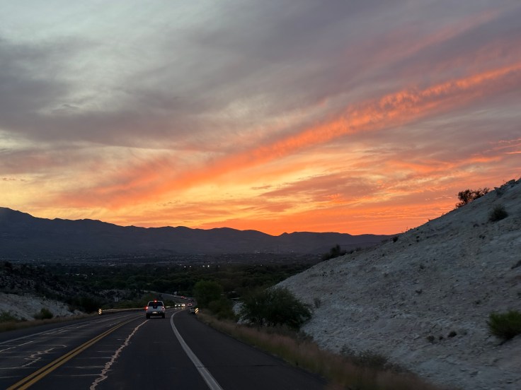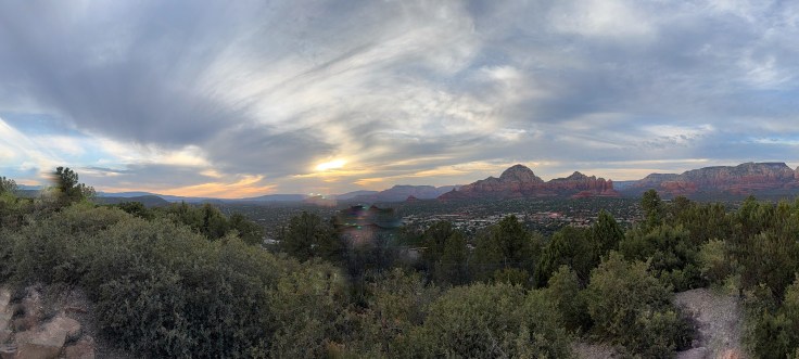 Sedona is absolutely beautiful. We went to the Church of the Holy Cross, we wanted to hike to Devils Bridge but we realized it was a 10 mile hike. This old lady is not up for that. Whew! I like the shorter treks. We started the Brins Mesa trail and hiked about 1 mile in and had to turn around because I was getting sick. Ugh! I just can’t seem to drink enough water. We went back to camp and I took a nap. Me, the one who doesn’t believe in napping. I slept for about an hour. We went to Tuzigoot National Monument and hiked the 1/3 mile loop (that’s my speed) and then we went to the airport mesa to get sunset pictures. We got there early. Really early. Clouds came in and we took some pictures and thought we would not get much better since the clouds were so low. On the way back to camp the sky was spectacular. We should have waited. Although, we were on the other side of those mountains so maybe they didn’t get all that color.