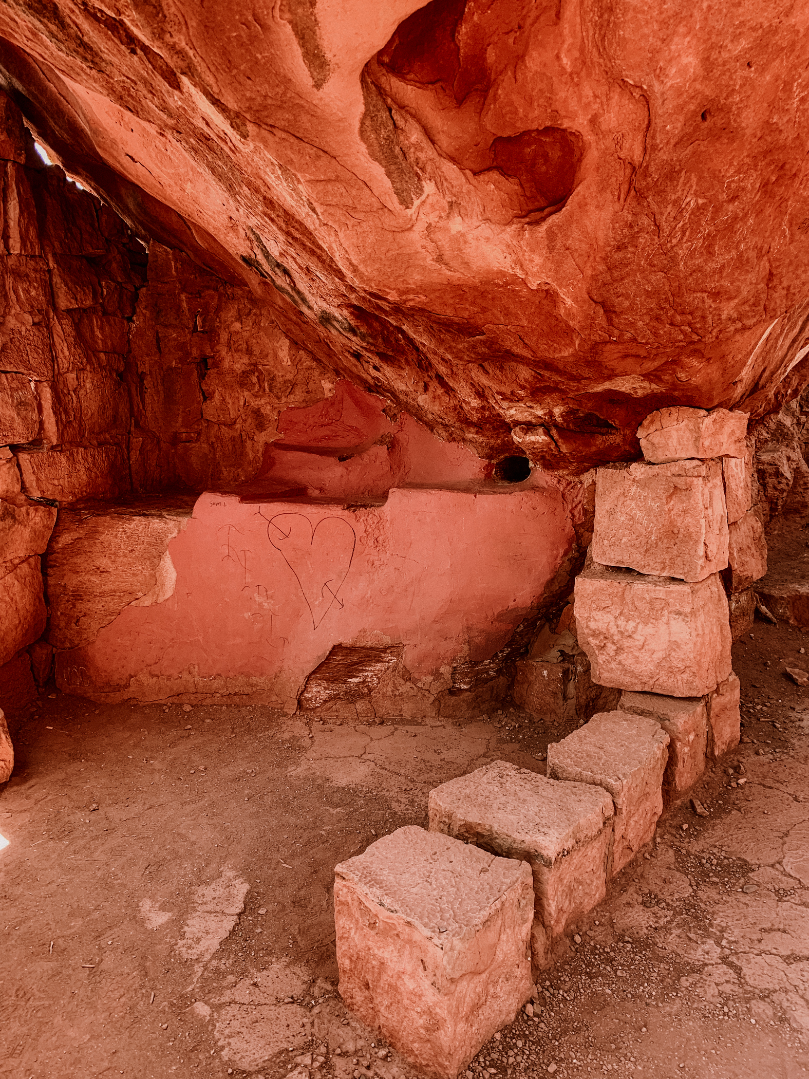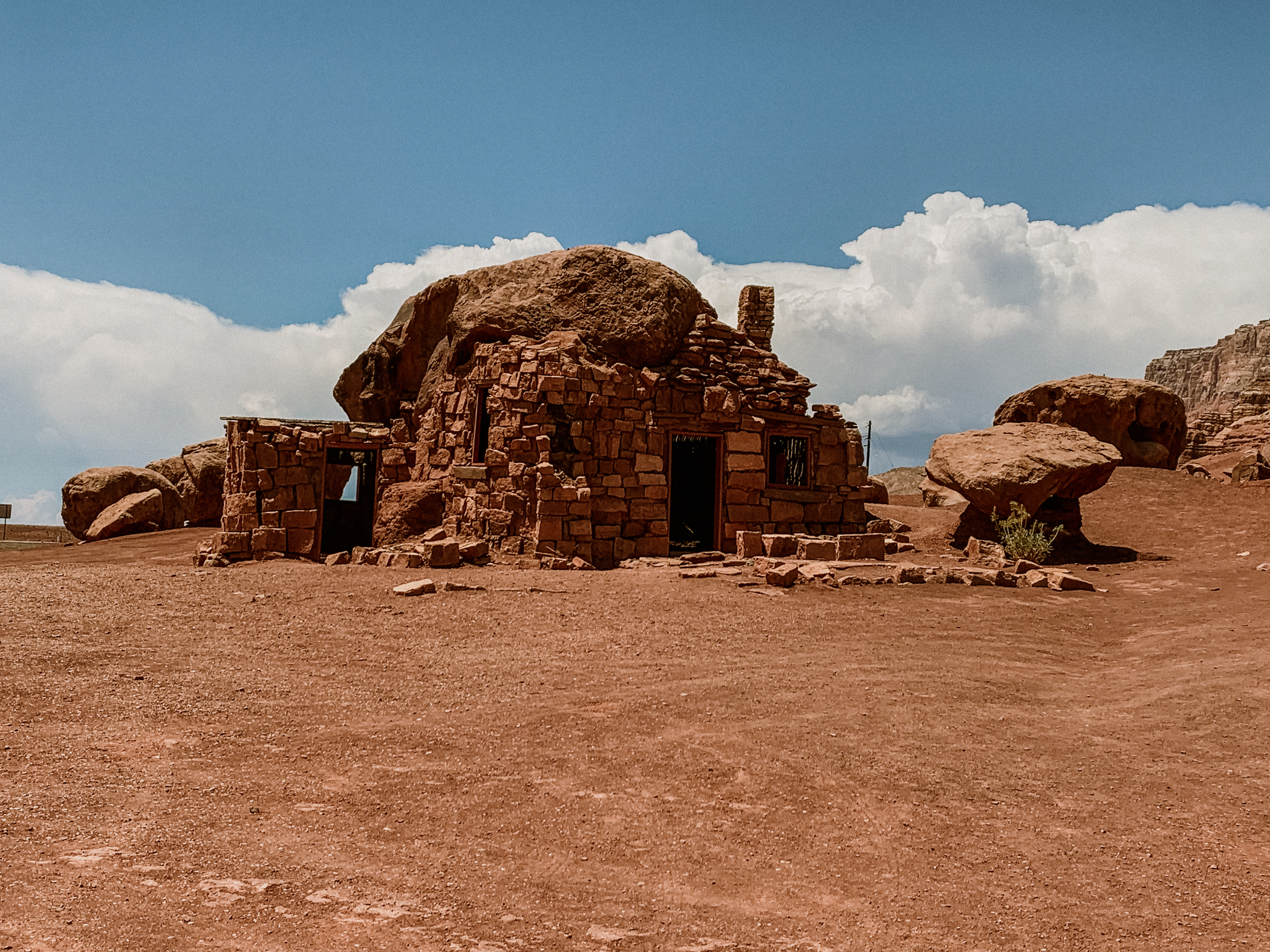 Don’t expect me to tell you about the Vermilion Cliffs. I know it had to do with the red color in the rocks. But science just isn’t my thing so, while I’ll listen, I won’t remember. Even if I am interested I could forget in a matter of seconds. Now the Cliff Dwellers–that’s a different story. That was interesting. Though I can’t remember names and dates, this couple back in the 1930’s (I believe) were driving through when their car broke down. They had nowhere to go so they settled here. She started making a home out of the rocks and next thing you know, they are selling food to visitors of the Grand Canyon. Not sure how they managed that one, but that was the story. Later they built a restaurant and lodge.