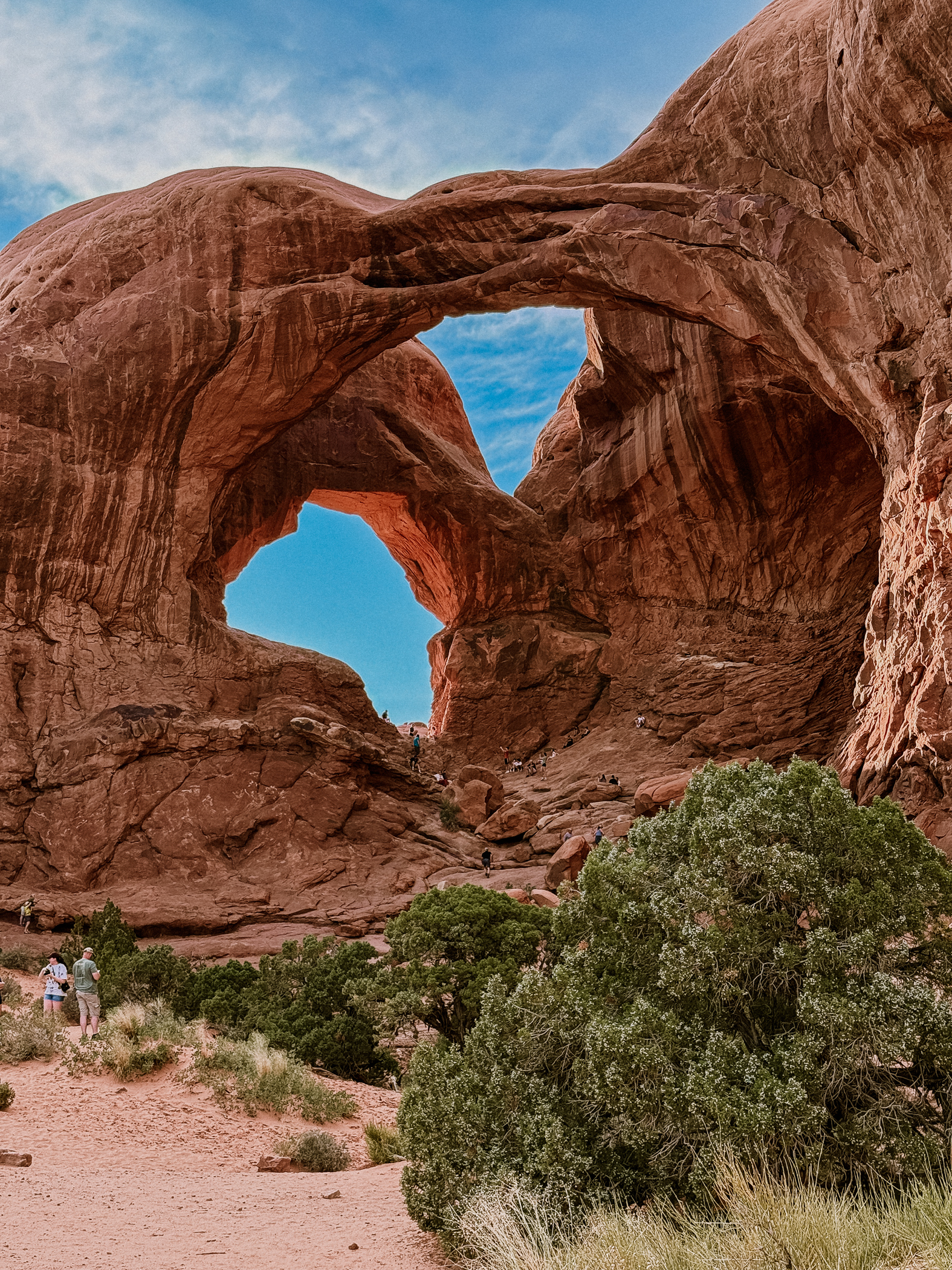 Back to Arches. We camped right down the road–like within a mile of the entrance. This is going to be somewhat short and sweet because my memory is failing me. I am pretty sure we went in that night and then the next. We did go inside for sunset pictures. I watched as the rest of the crew climbed the rocks and sat in the opening of the Arches. Just a beautiful sight!