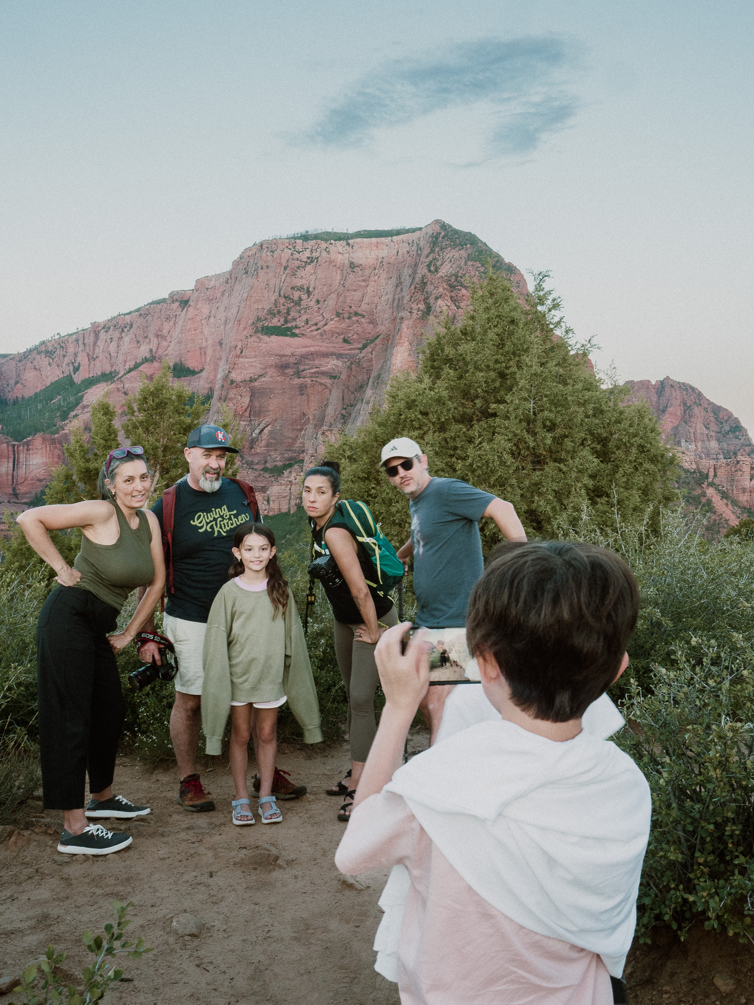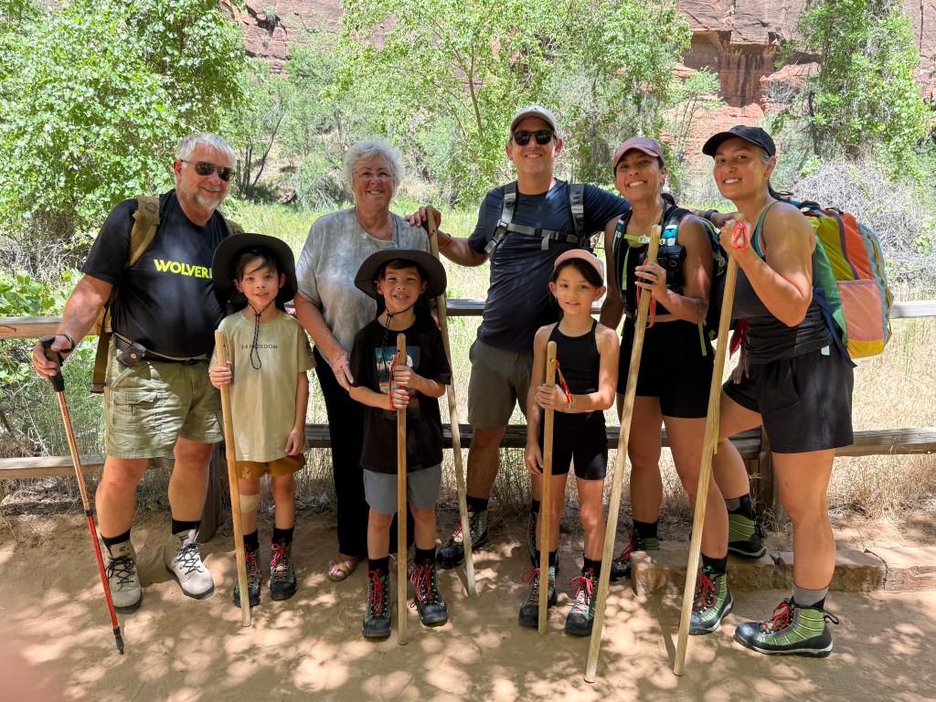 We stayed right down the road from Zion so we could hop on a bus and go into the park. Zion has very limited parking and you cannot drive through Zion so the bus is the way to go. This is the gang before they did the Narrows River Trail. I did not go on this hike as I already knew it would be hours long and walking through the river. I rode the bus in with them and then went back to the camper to chill with Chanel.