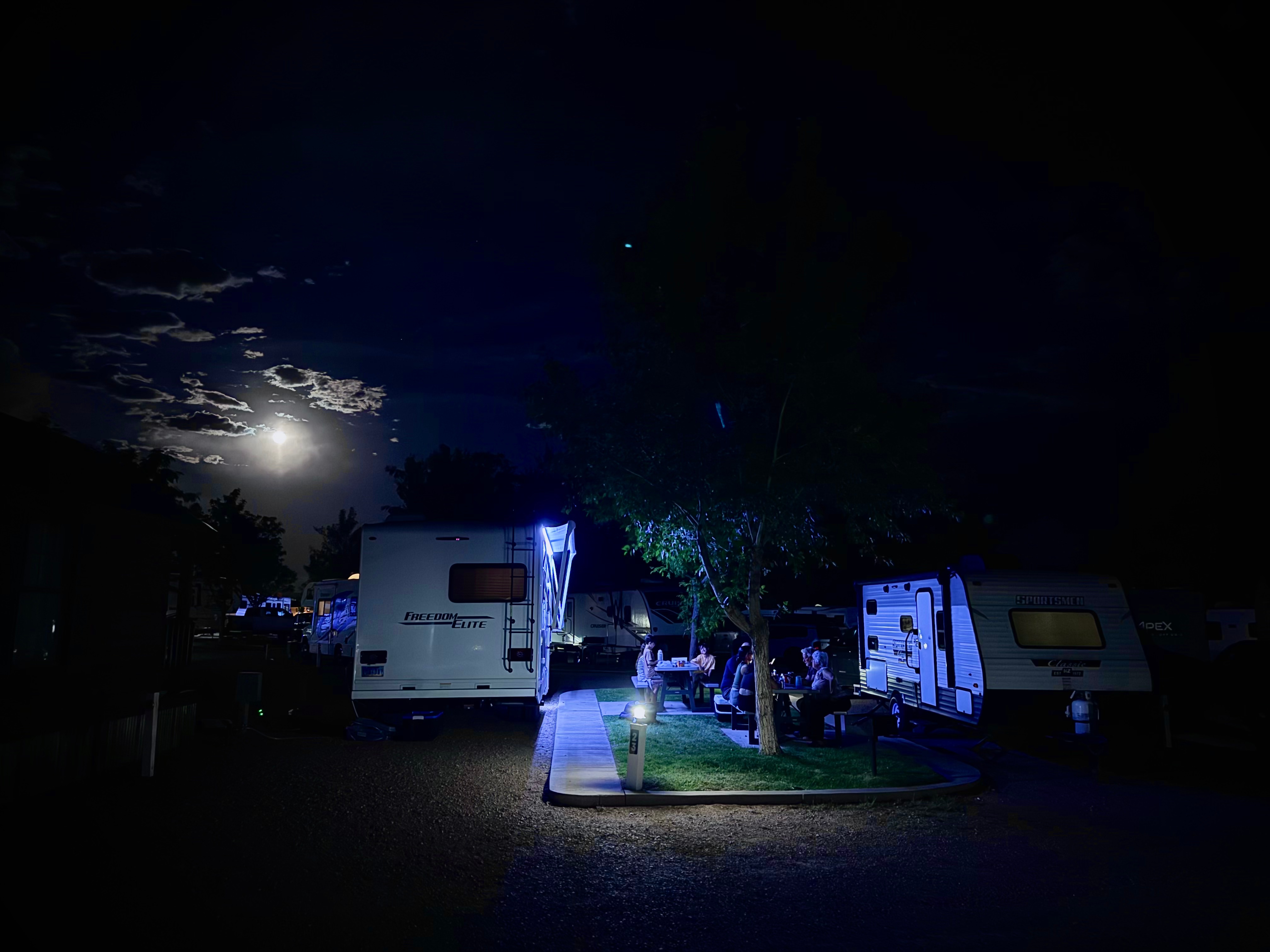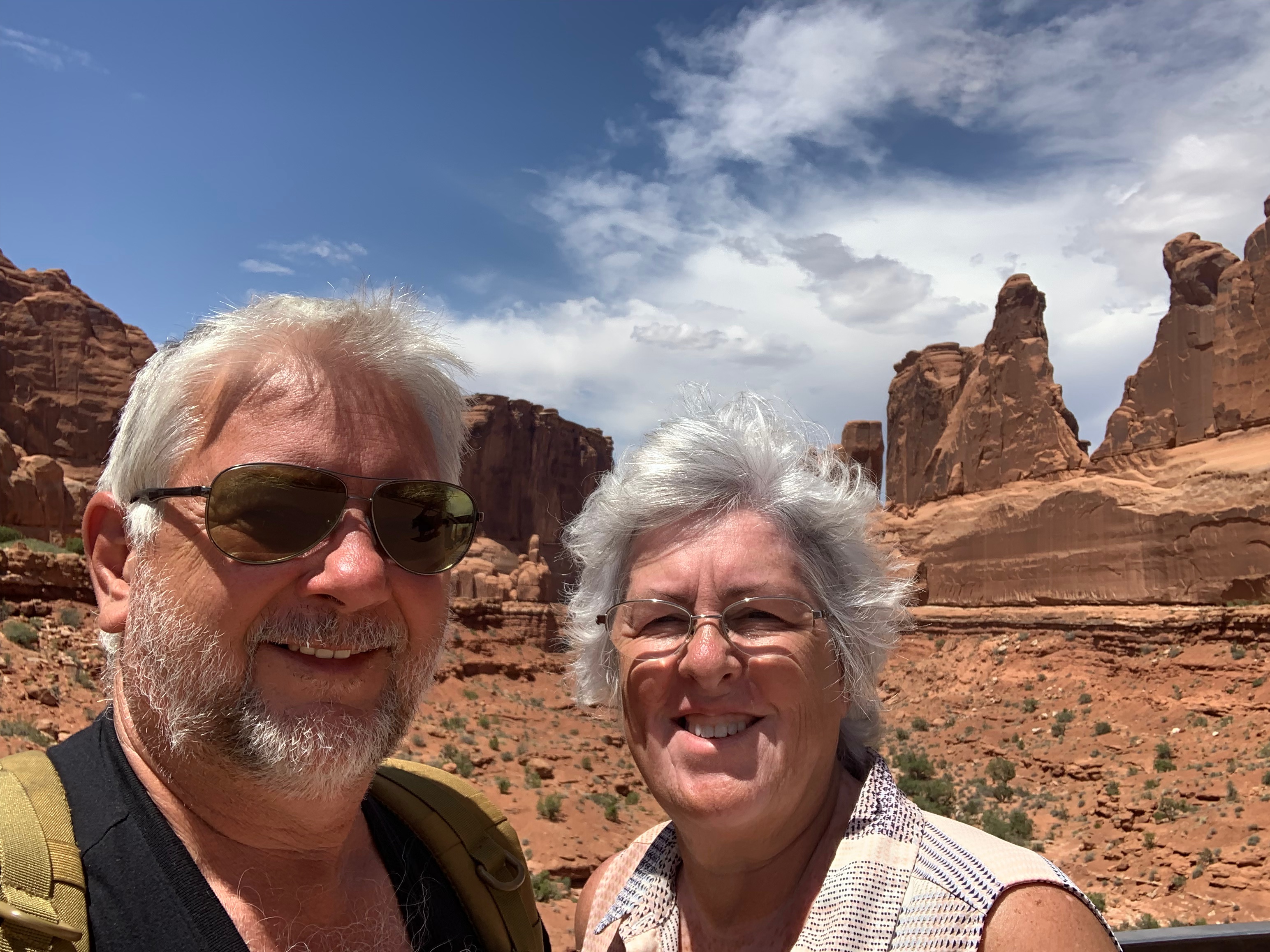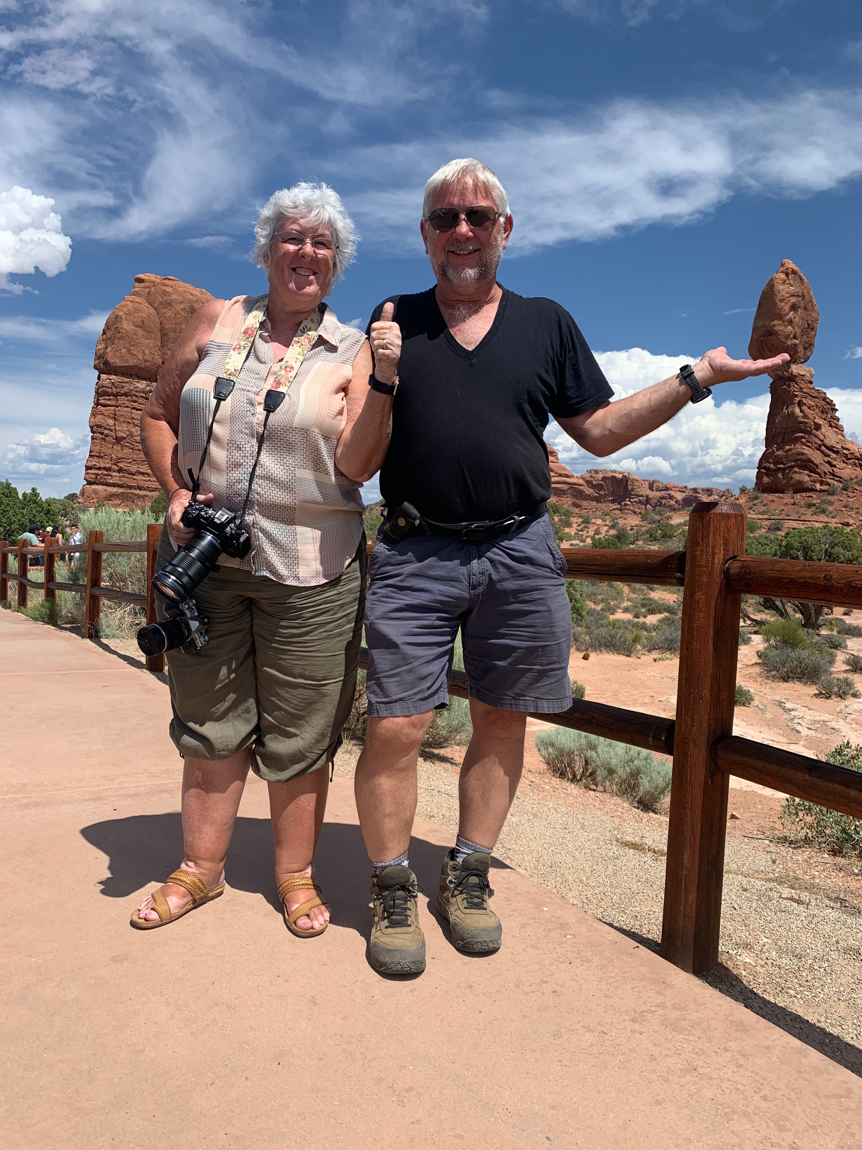Oh, but let me not forget to tell you about our arrival at the campground. As we were backing into our campsite something broke and the tire was coming off. We were so grateful we decided to stay the extra couple of days because this would have been a disaster on the highway. Whew! Talk about a close call. And we were fortunate enough to find a place with the part John needed to fix it. It took us nearly an hour but we got the part and John had it fixed in about 30 minutes. Just in time to make dinner. Close call for me too. I thought I was going to have to cook. Just kidding, we went out to eat.