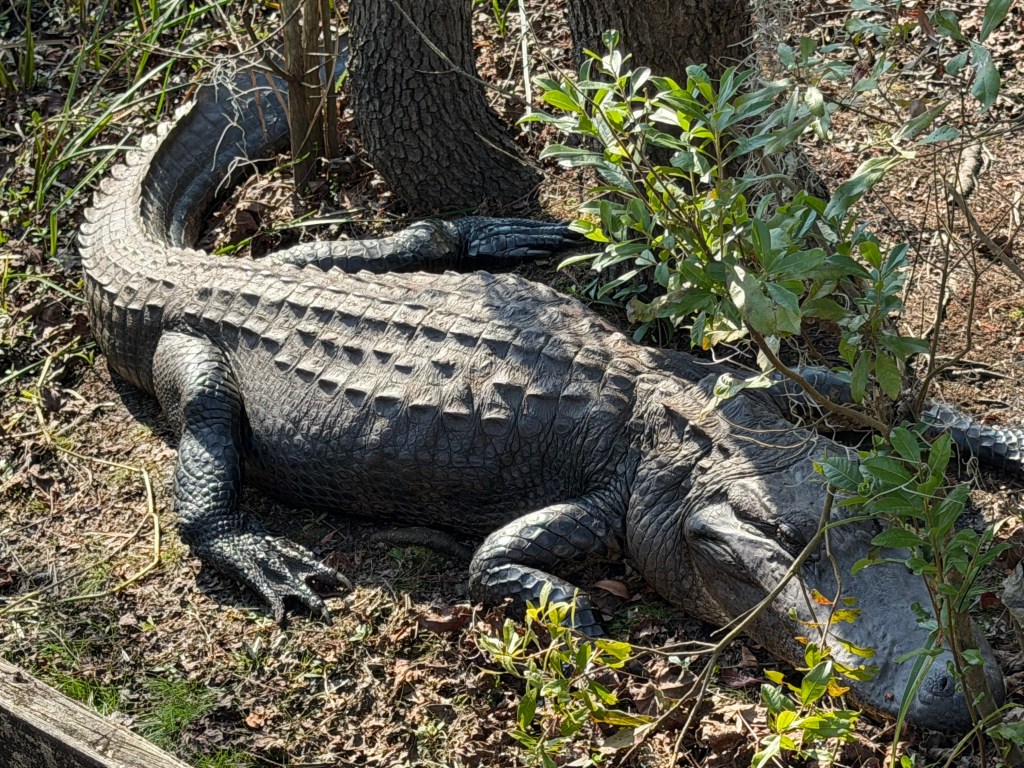 Our first stop for the day was Barataria Preserve. It is one of 6 sights scattered across Louisiana as part of the Jean Lafitte’s National Parks. We arrived to discover, not only are dogs not allowed but there was only one short trail open. We put Chanel in the car with a window open and walked the .25 mile trail. Luckily it was early and the temperatures were in the high 60’s low 70’s by the time we finished. This guy is the only wildlife we saw. After walking the trail, getting my National Park stamp, we head to the city. New Orleans has lots of dog friendly restaurants and we chose