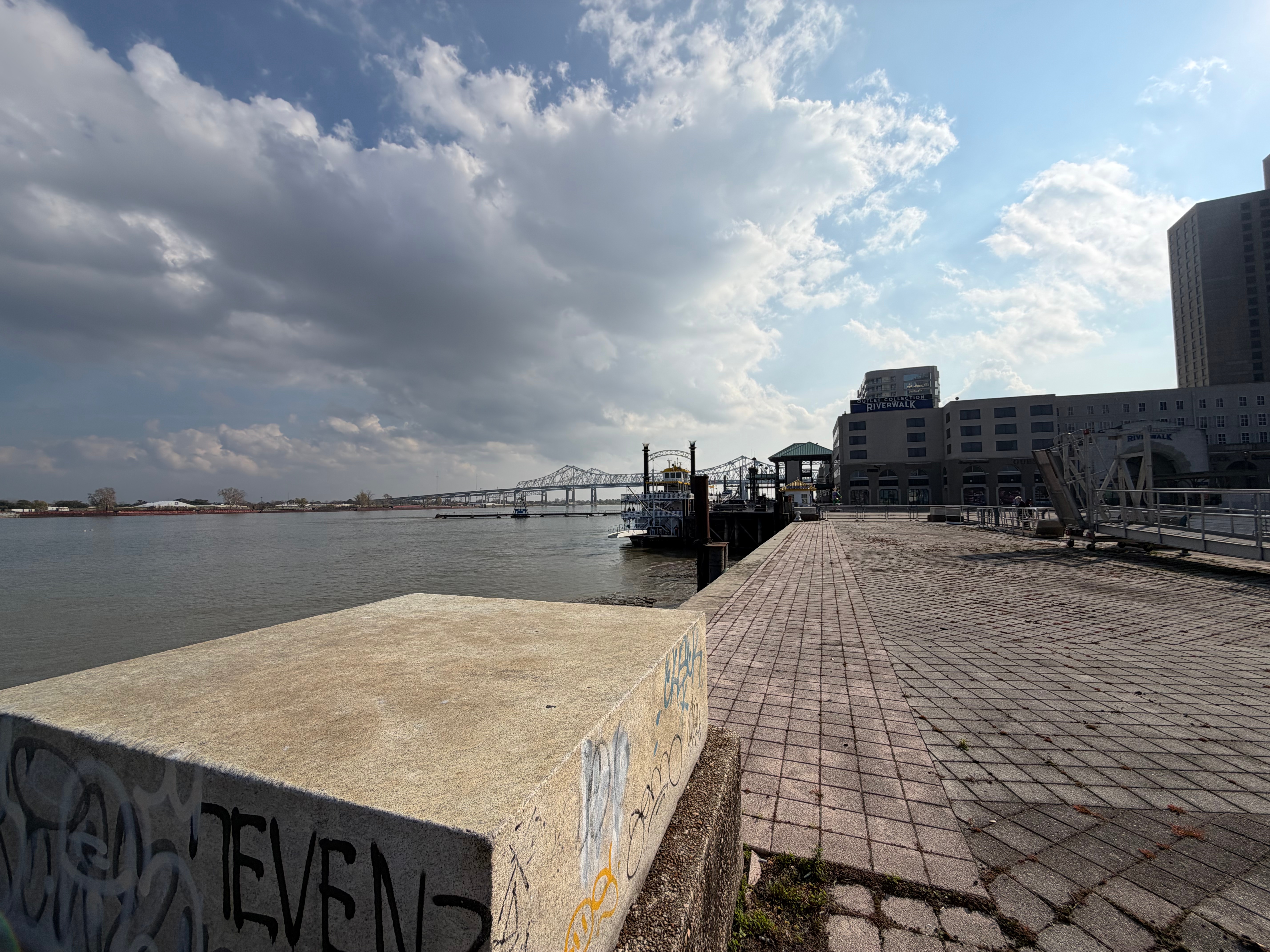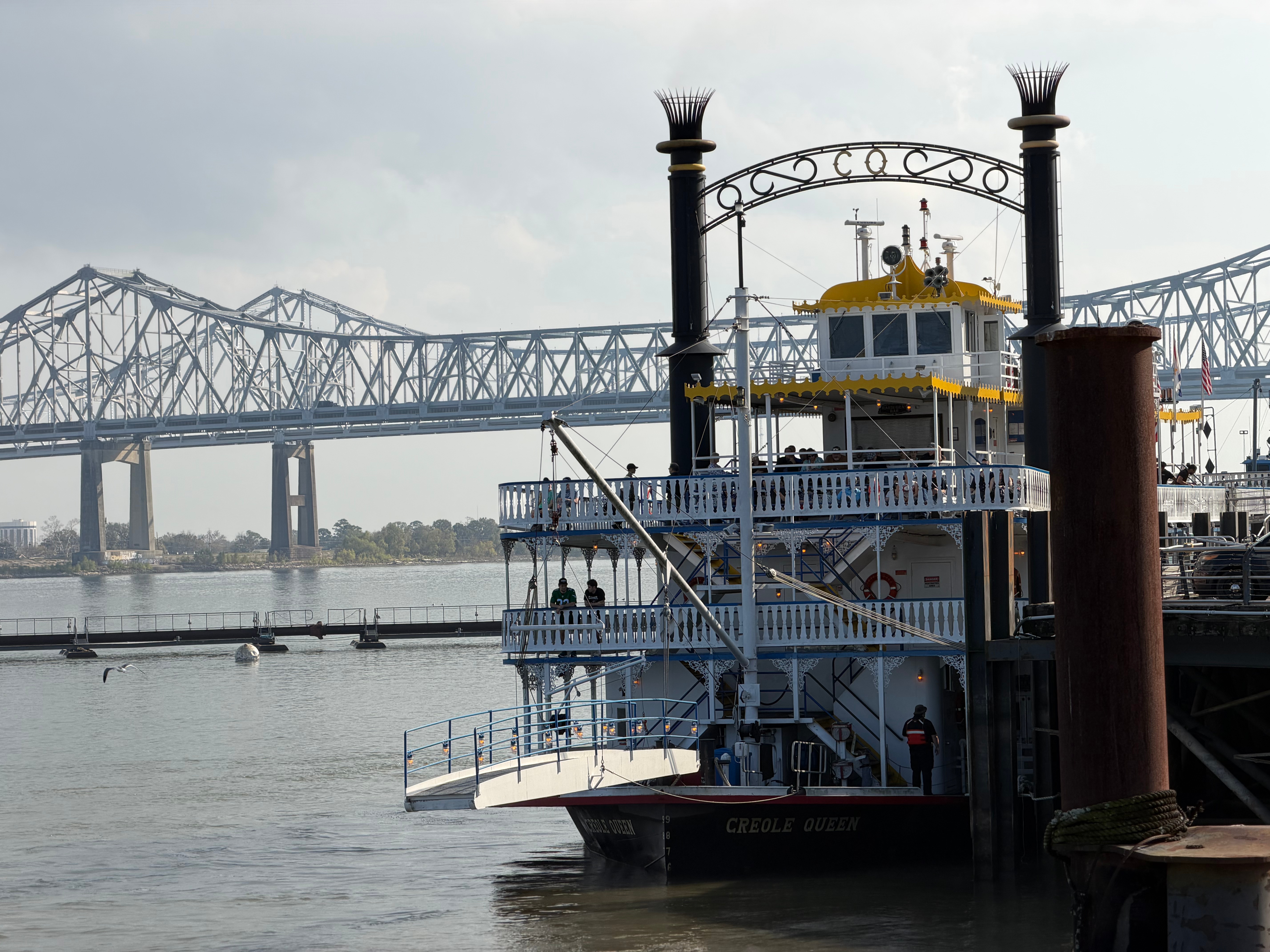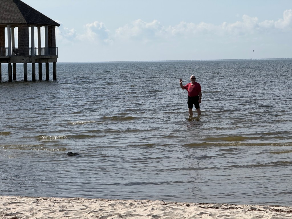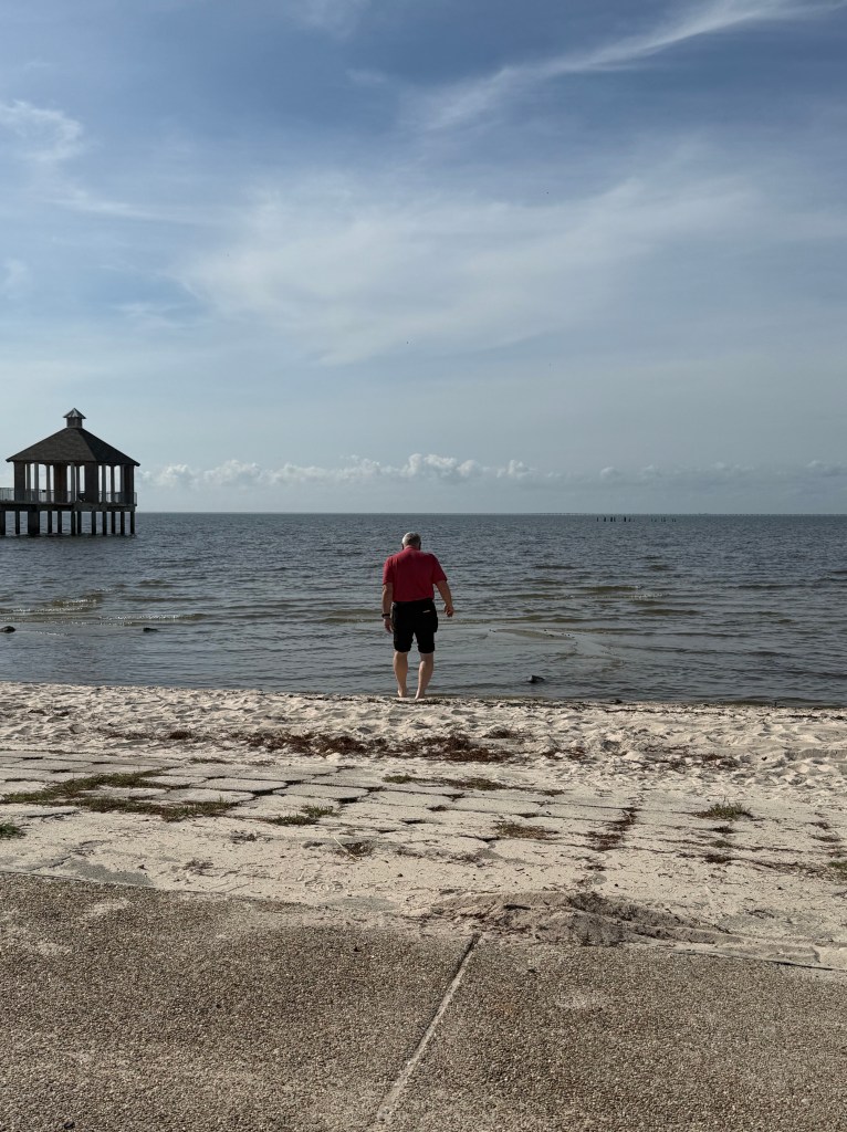 Flamingo A Go Go. It didn’t disappoint. We had lunch and they even brought a bowl of water for Chanel. She is soooo good. She sat quietly while we ate. After lunch we headed, on foot, to the French Quarter. After getting lost, we went back to the car and drove to the French Quarter. It was a full day and we got back in time for a not so spectacular sunset on Lake Pontchartrain and dinner and a few games of scrabble. John slaughtered me in both games. OMG! It was bad.